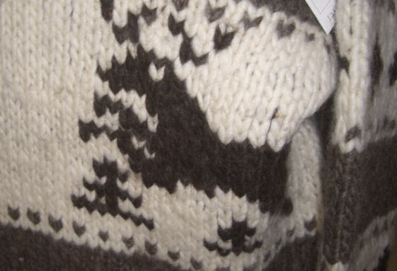 | ※このカウチンセーターは超極太の毛糸で編まれているので、肩がこりやすい方には、お薦め出来ません。 |