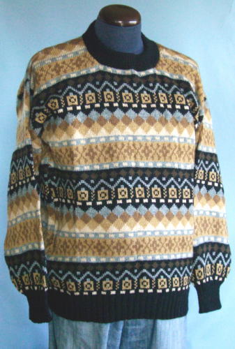| アンデスの幾何学模様をほどこしたセーターです。日本では見かけないデザインですので、注目度も高いでしょう。ペルー製アルパカ セーターです。アルパカセーターの特徴である、暖かくて、軽いすばらしいセーターです。男性向き |